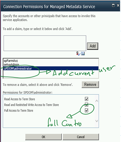 Seems that the user does not have permission on the “Managed Metadata Service” (do it from Permissions NOT Admin.. I waste 2 hours on this 😦 )